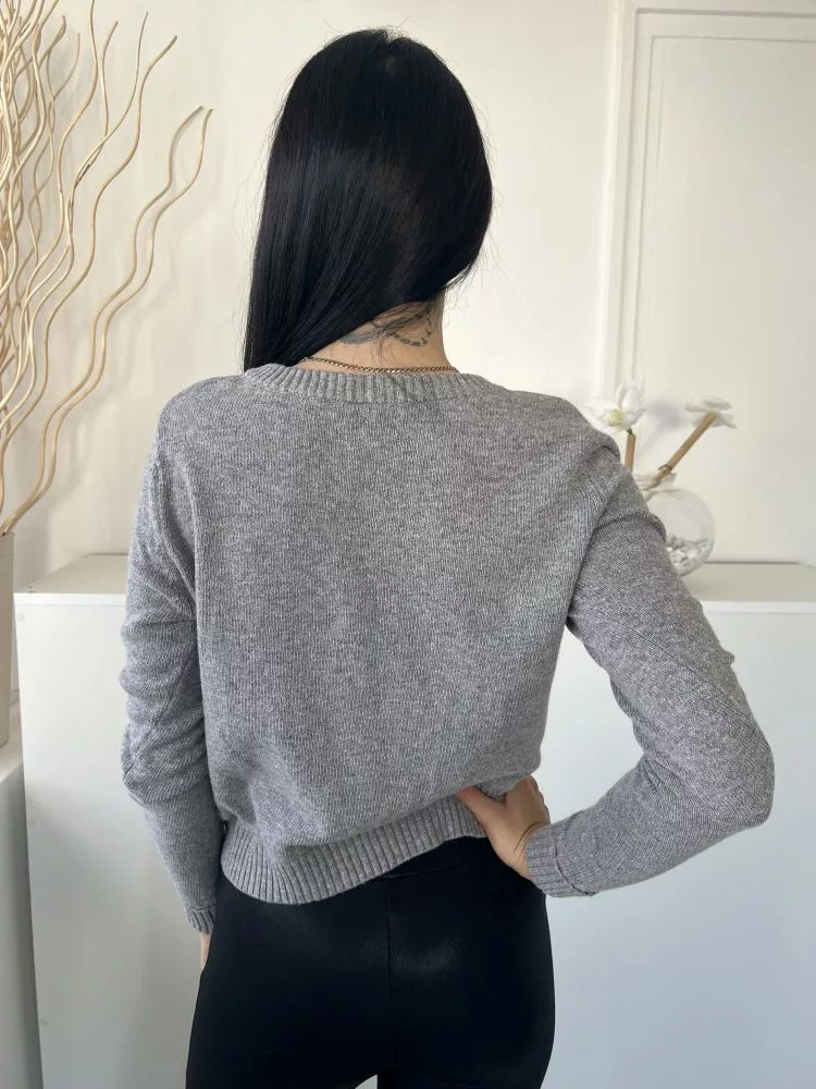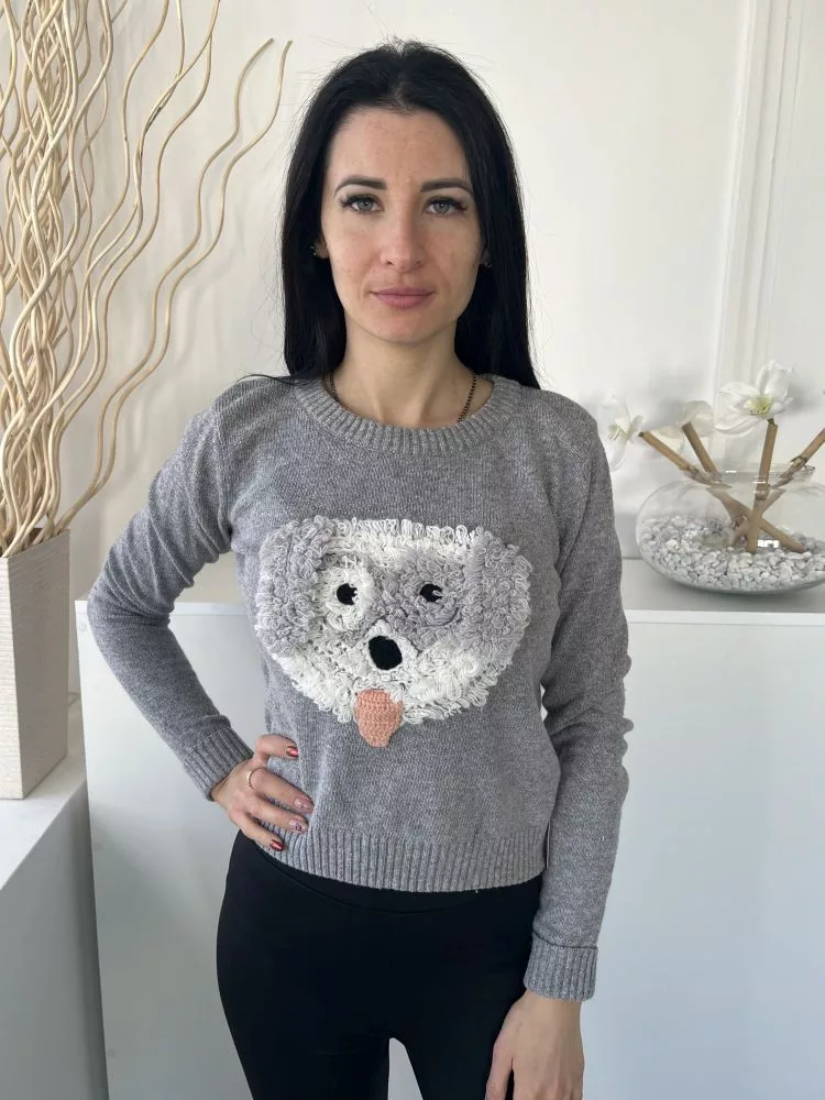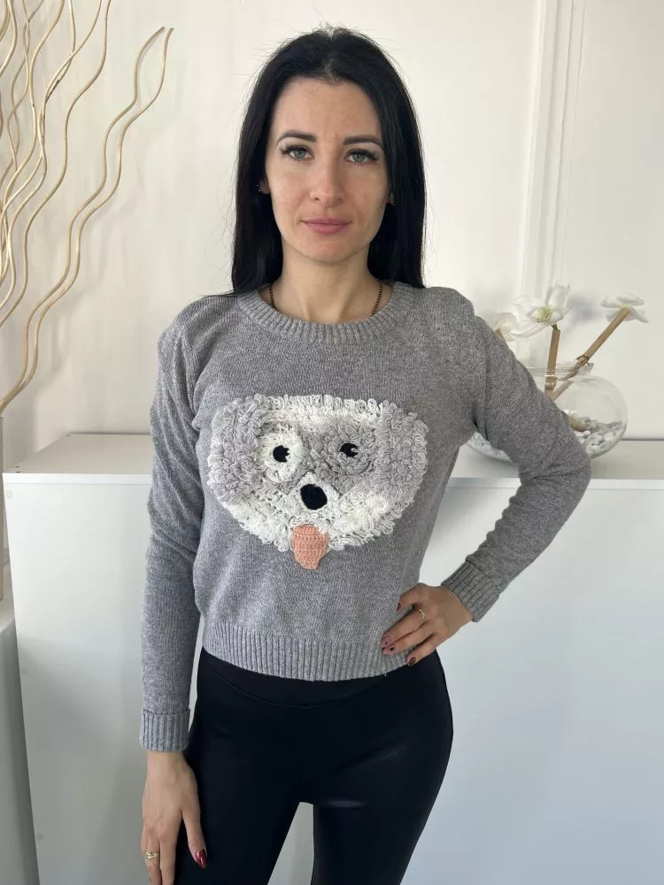 Henry Holland (M) Szürke Elől Bolyhos Kutya Mintás Kerek Nyakú, Gépikötött Felső
