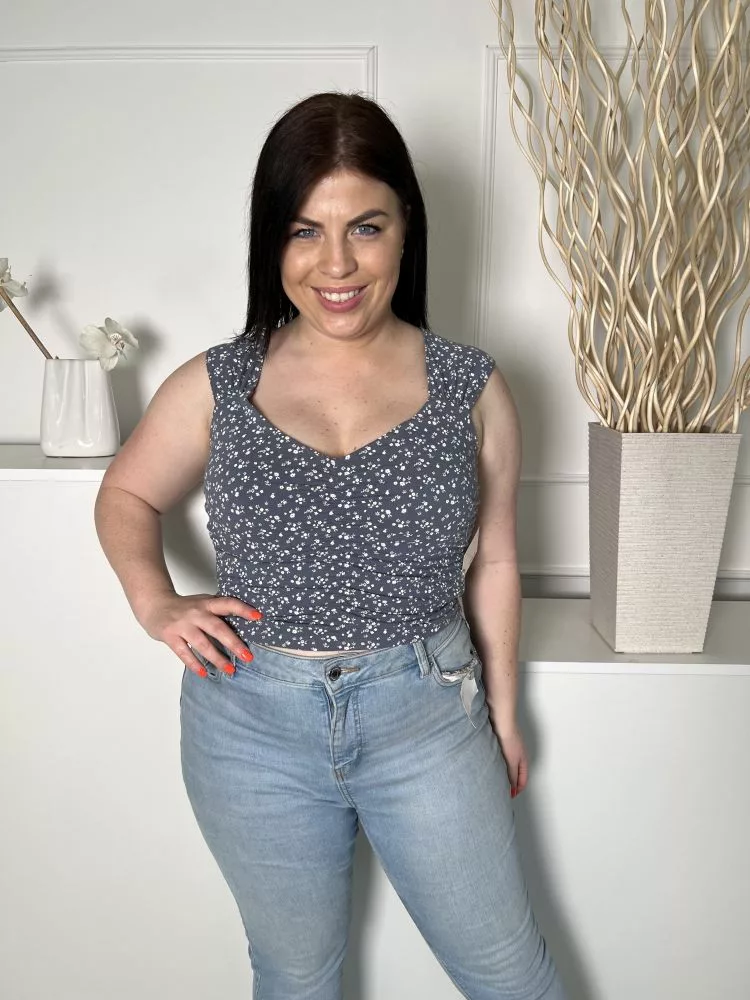 Hollister (L) Szürkéskék Fehér Apró Virágos, Elől Húzott Rövid Fazonú Felső