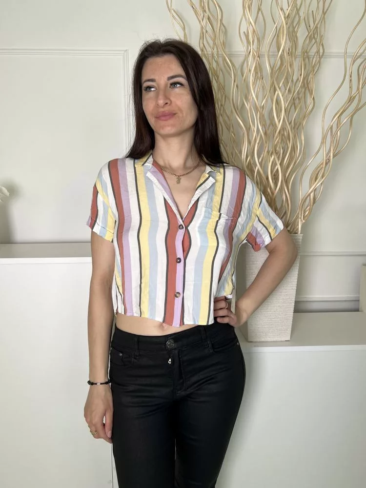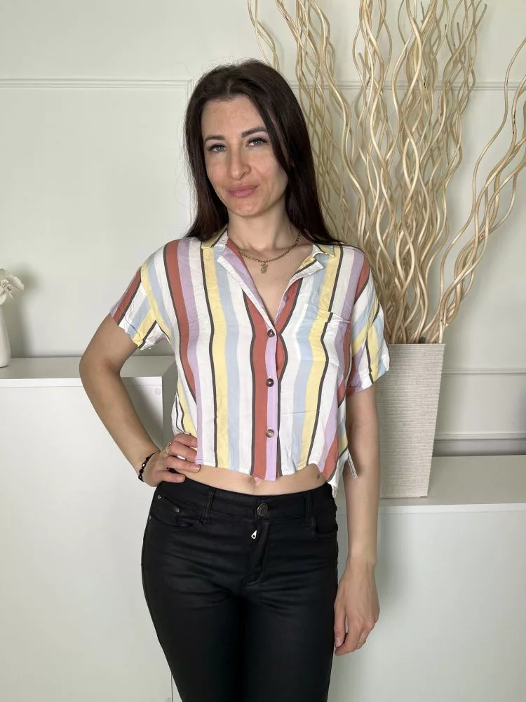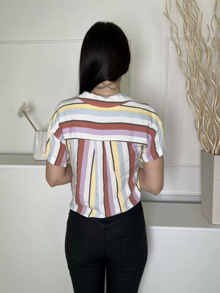 Hollister (S) Fehér Színes Csíkos, Elől Végig Gombos Mellnél Zsebes Felső