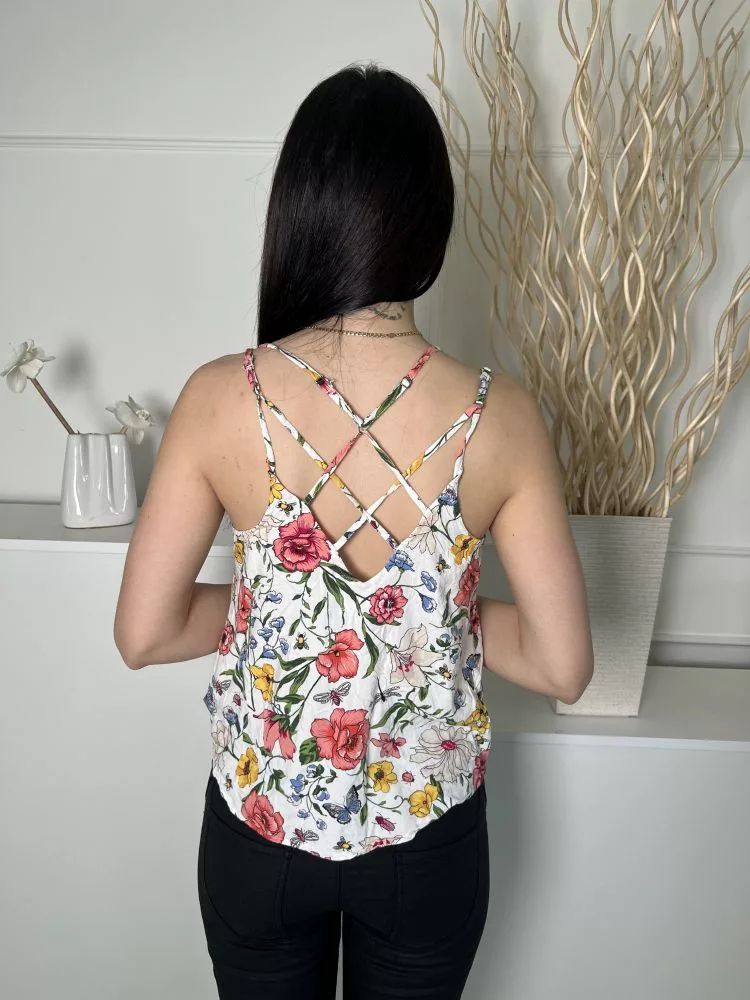 Hollister (S) Fehér Színes Virágos, Dupla Pántos Hátul Keresztpántos Felső