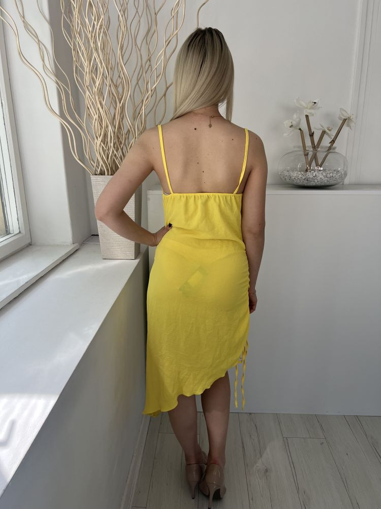 I Saw It First (S) Kanárisárga Ejtett Nyakú, Pántos Oldalt Húzott, Díszmegkötős Ruha