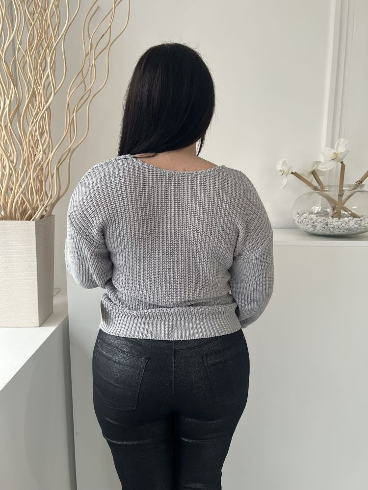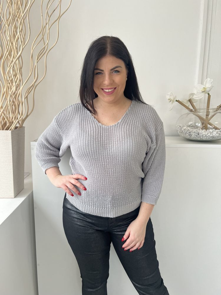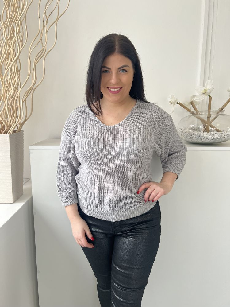 Images (M) Szürke V Kivágású, Rugalmas Anyagú Kötött Felső