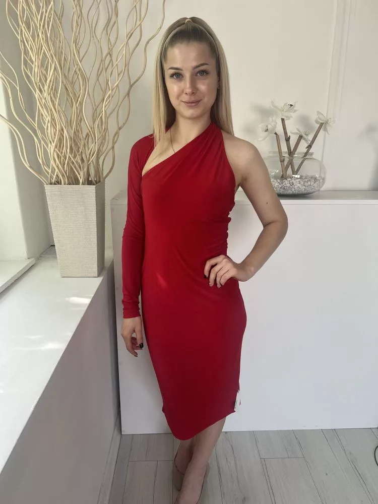 In The Style (M) Piros Hátul Nyitott, Félujjas Rugalmas Anyagú Ruha