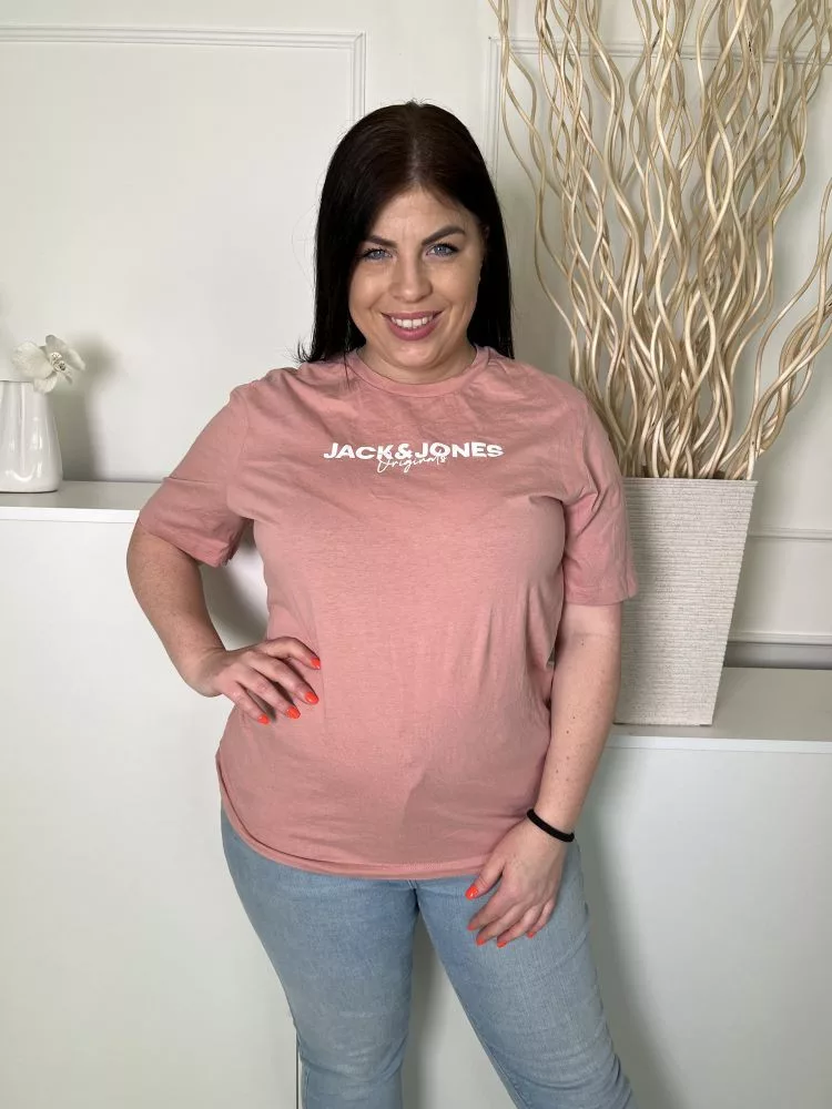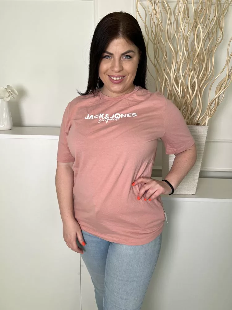 Jack&Jones (L) Tüdőszínű Mellnél Feliratos, 100% Pamut Kerek Nyakú Felső