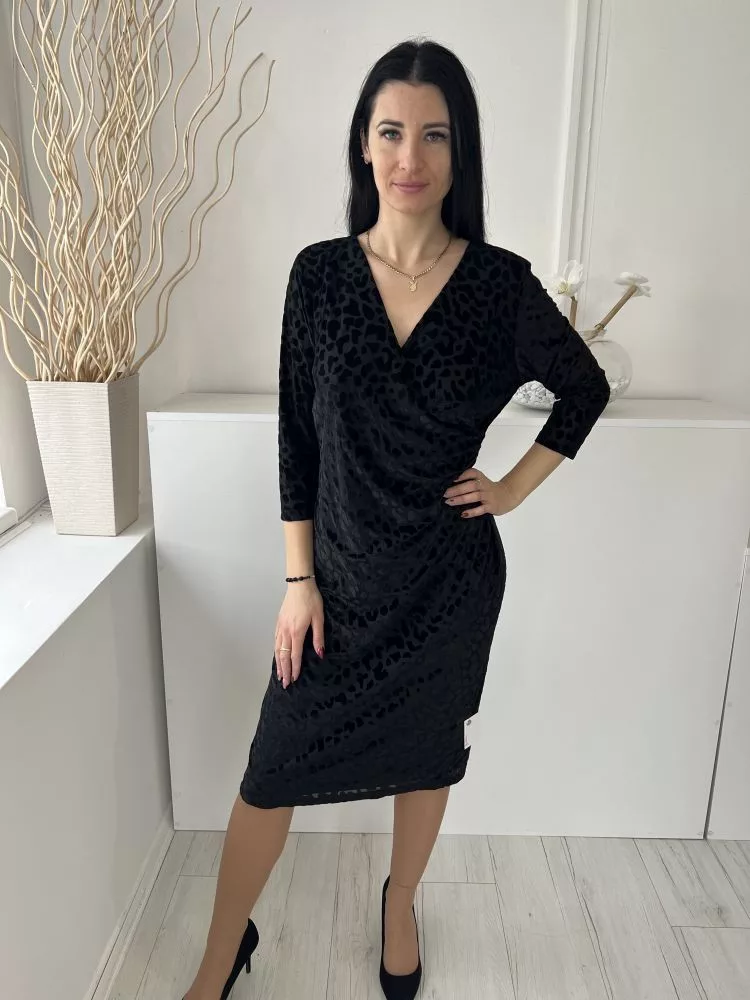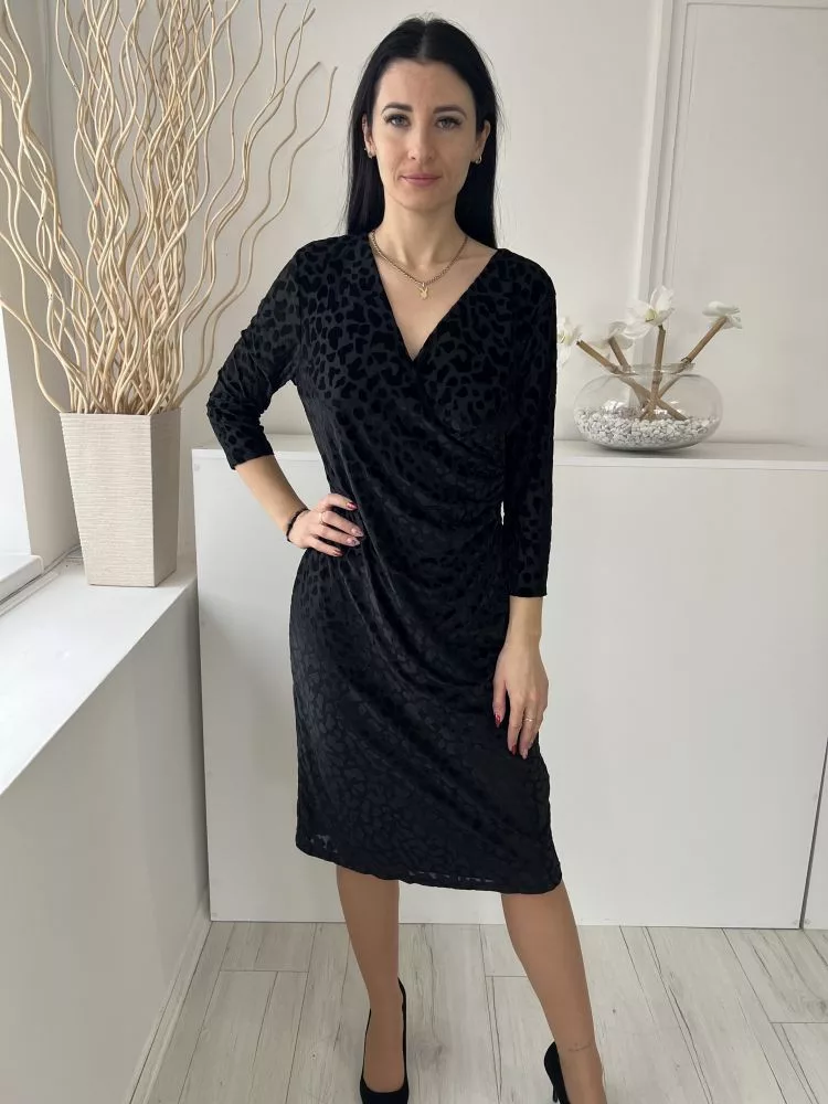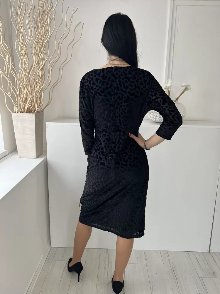 Joe Browns (M) Fekete Hátul Cipzáros, Fekete Bársony Foltmintás Oldalt Húzott Ruha