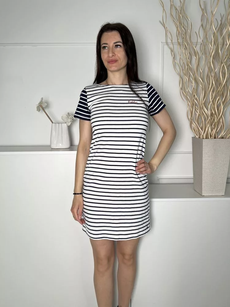 Joules (M) Fehér Sötétkék Csíkos, Kerek Nyakú 100% Pamut Ruha