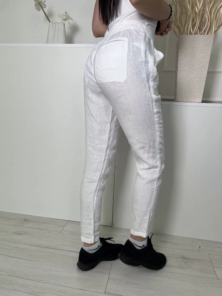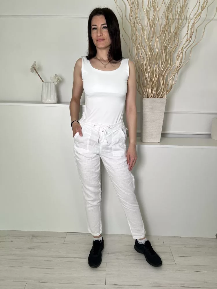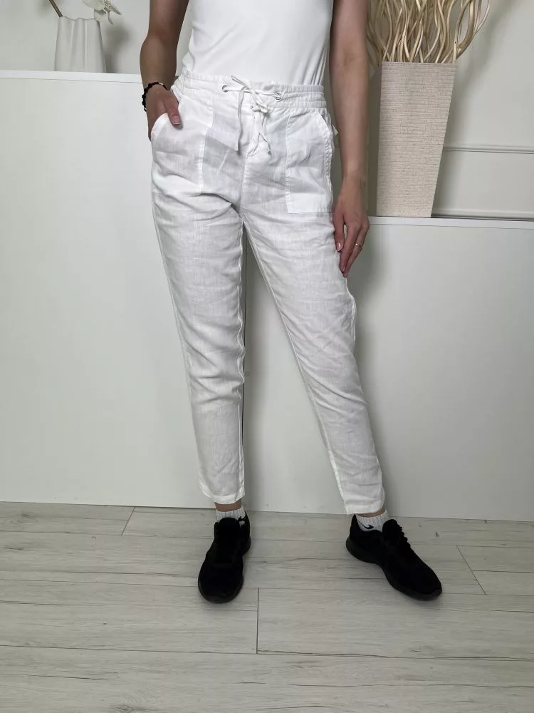 Joules (S) Fehér Elől Összehúzható, Megkötős Zsebes, Enyhén Áttetsző, 100% Len Alapanyagú Nadrág