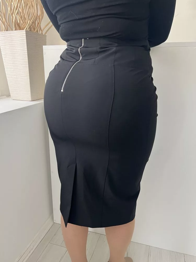 Karen Millen (L) Fekete Hátul Cipzáros, Sliccelt Deréban Díszvarrásos Szoknya
