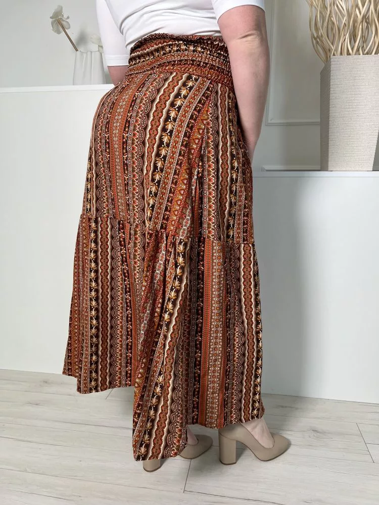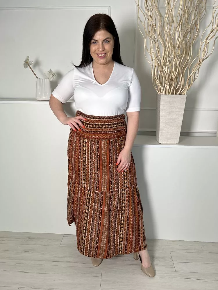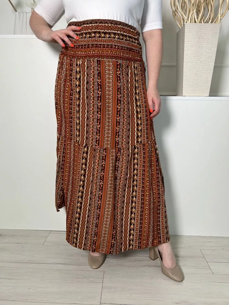 (L) Barna-Fekete Mintás, Darázsolt Derekú Lenge Fazonú Szoknya