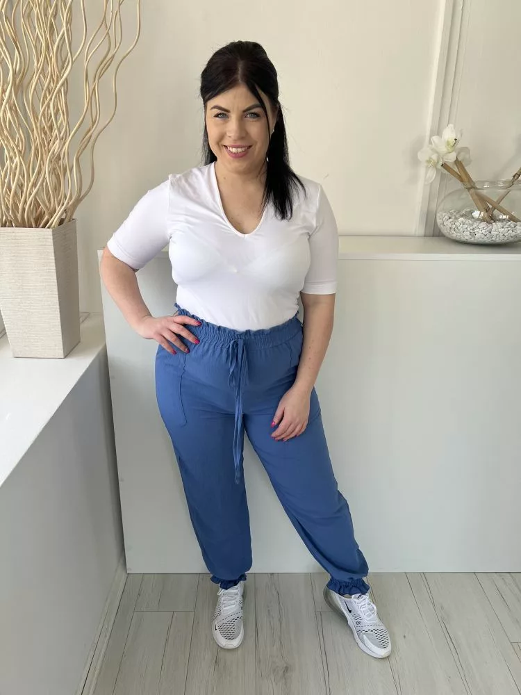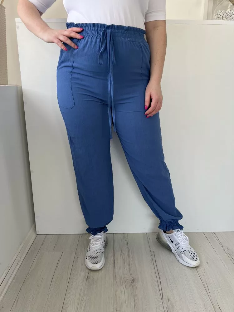 (L) Égkék Derékban Darázsolt, Zsebes Díszmegkötős, Fodros Aljú Nadrág