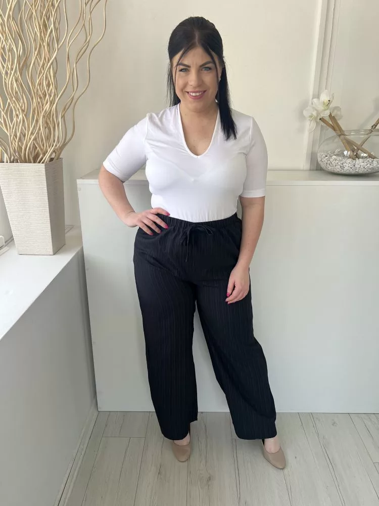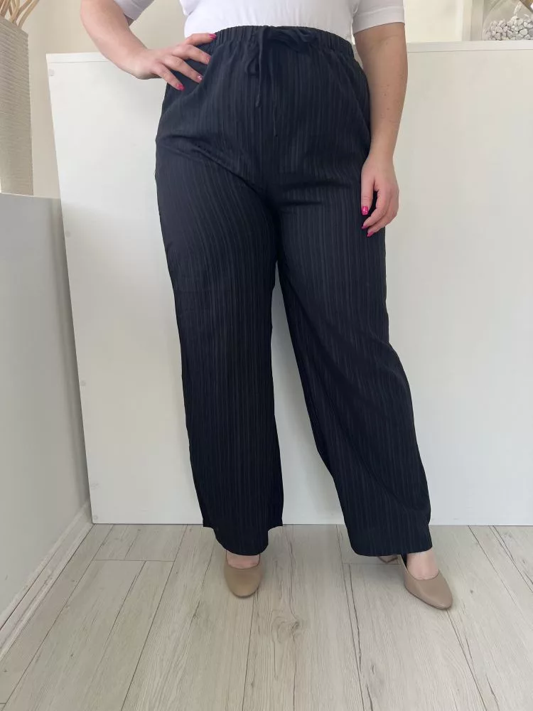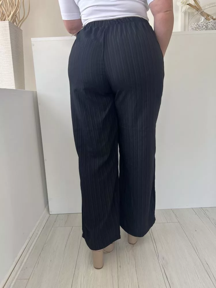 (L) Fekete Anyagában Mintás, Gumisderekú Díszmegkötős, Elegáns Fazonú Nadrág