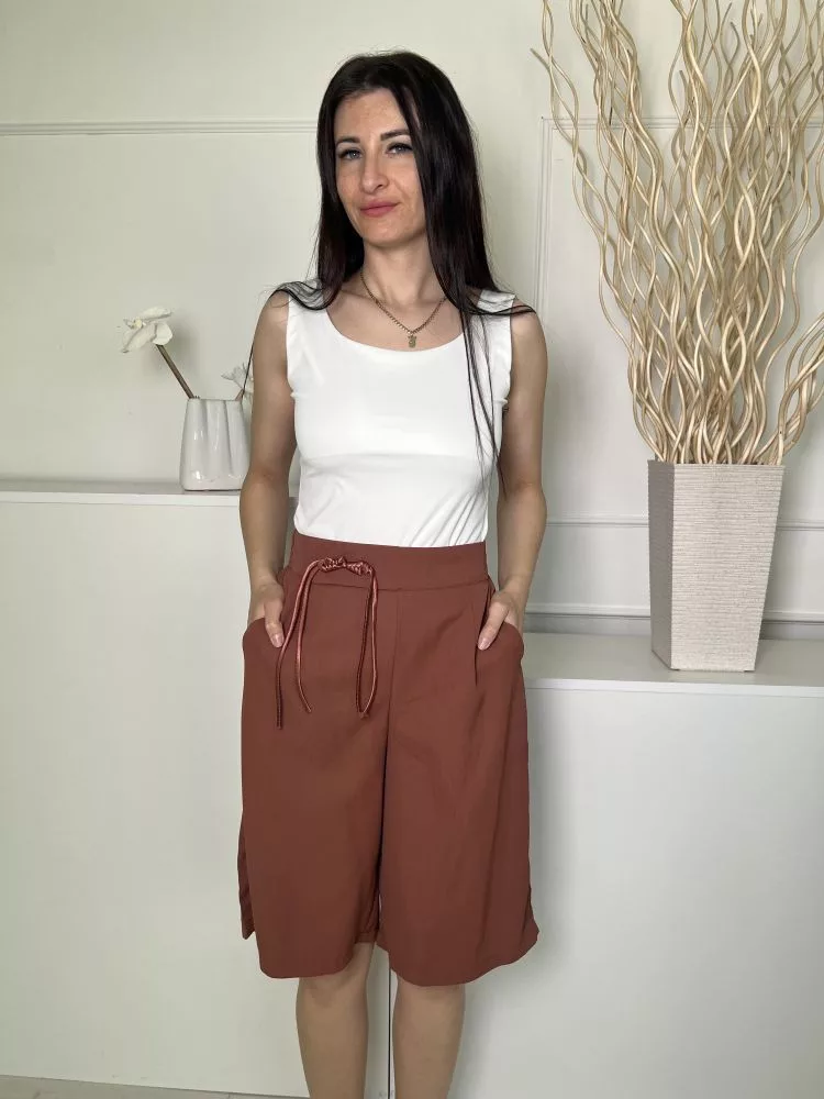 L-Zone (S) Barna Hátul Gumisderekú, Díszmasnis Zsebes, Bőfazonú Rövidnadrág