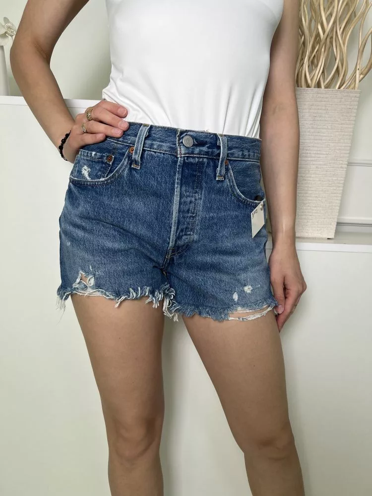 Levis (S) Kék Elől Gombos, Zsebes Szaggatott, Rojtos Aljú, Farmer Rövidnadrág