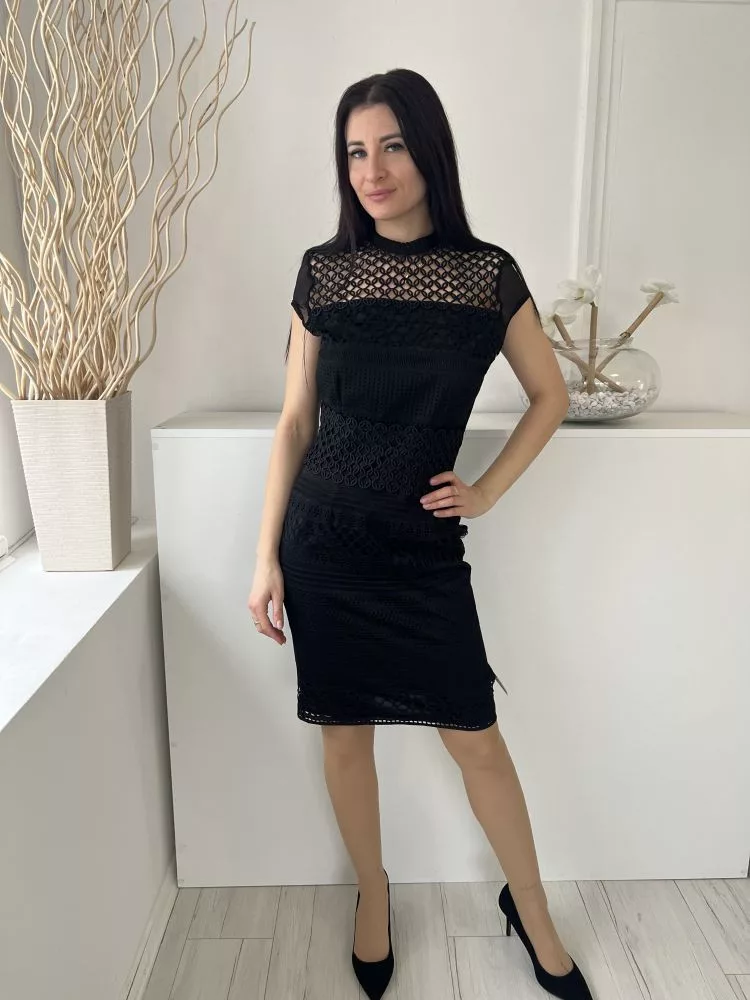 Lipsy (M) Fekete Hátul Cipzáros, Anyagában Csipkés Bélelt, Felül Áttetsző Ruha