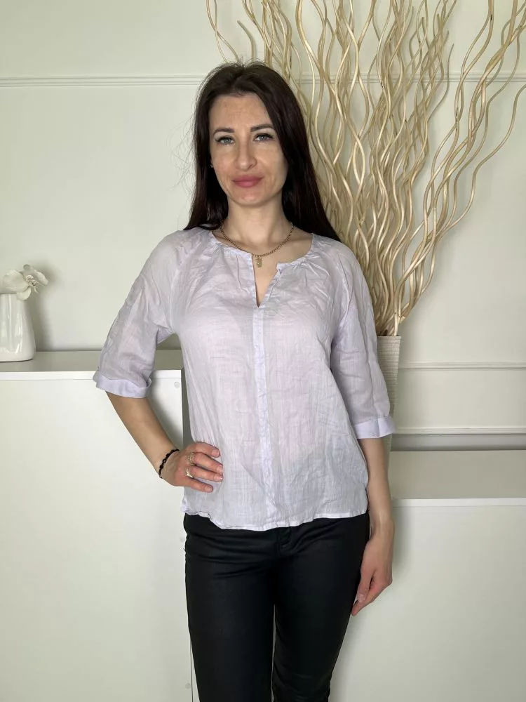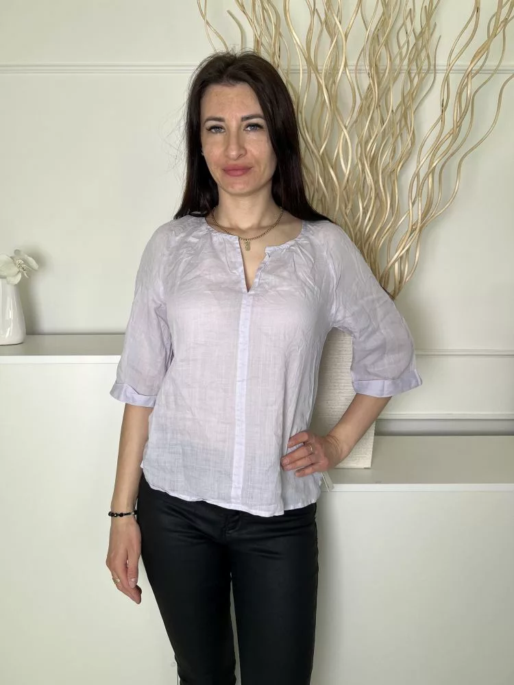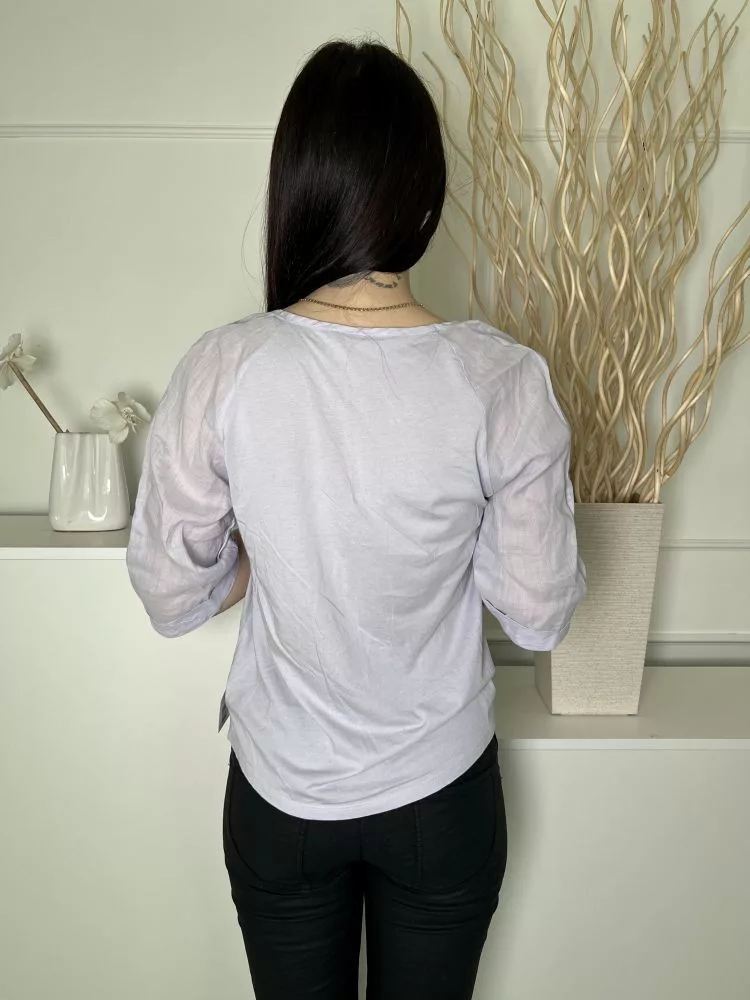 Luisa Cerano (M) Levendula V Kivágású, Kerekített Aljú Enyhén Áttetsző, Felvarrt Ujjvégű Felső