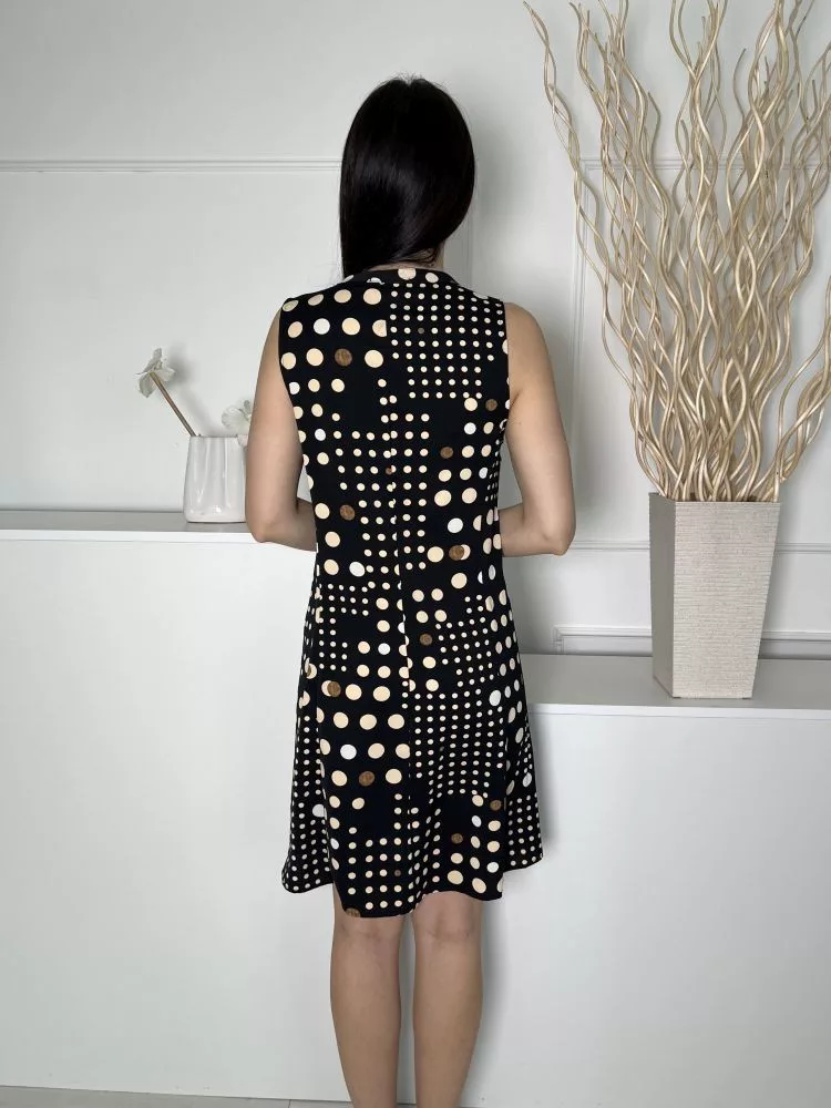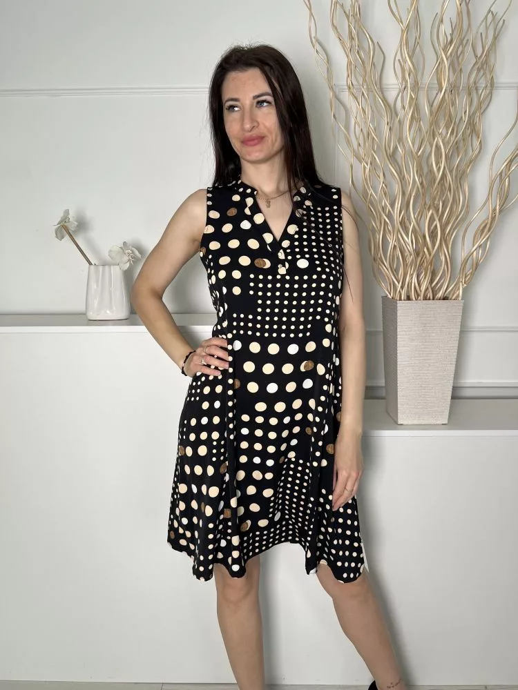 (M) Fekete Barna-Drapp Pöttyös, Mellnél Gombos Lenge Fazonú Ruha