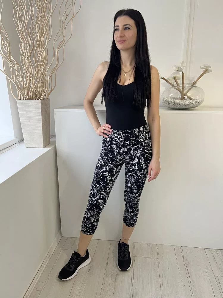 (M) Fekete Fehér Mintás, Gumisderekú Rugalmas Anyagú Nadrág