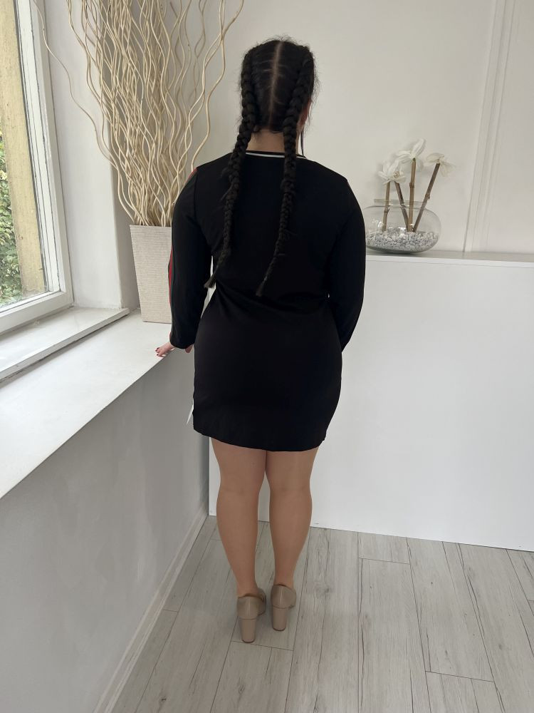(M) Fekete Mellnél Cipzáros Ujján Díszcsíkos Ruha