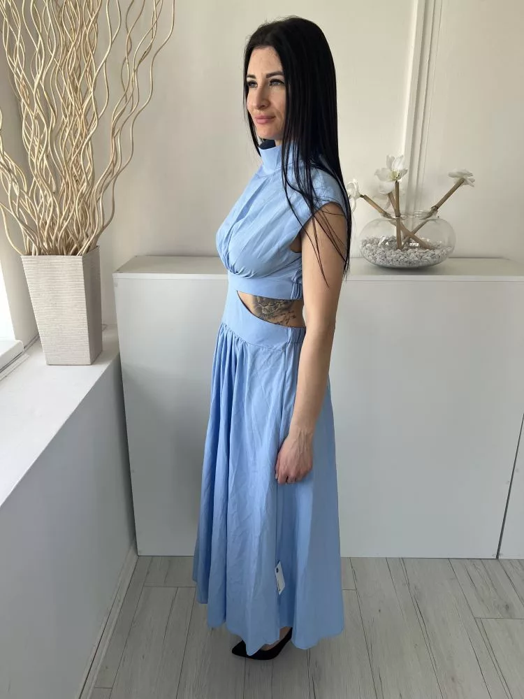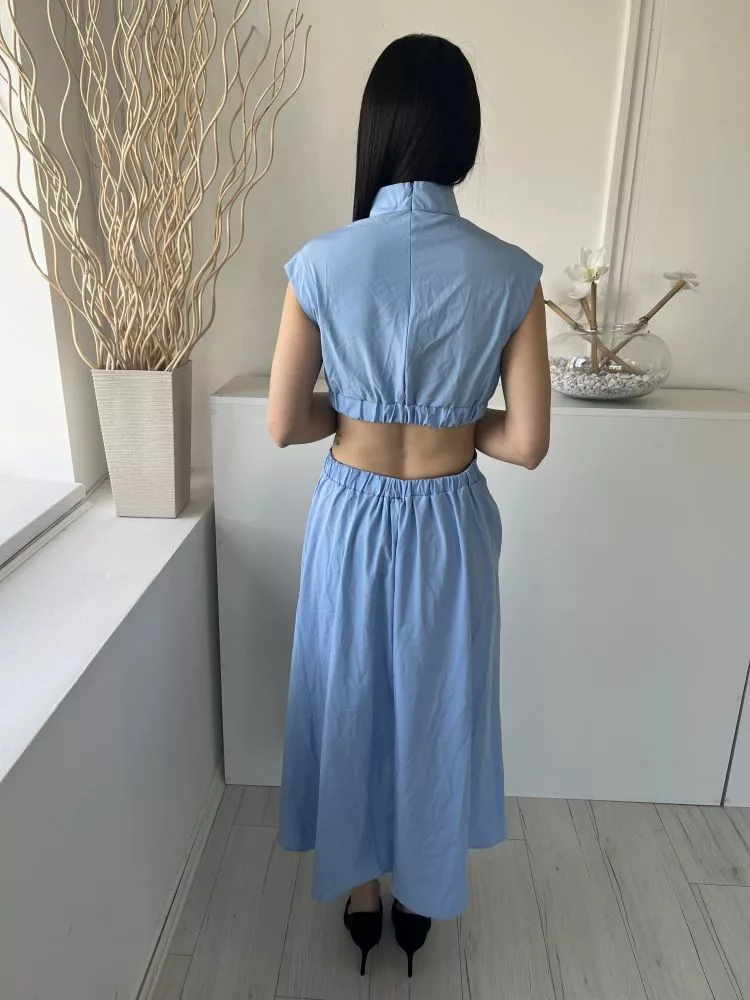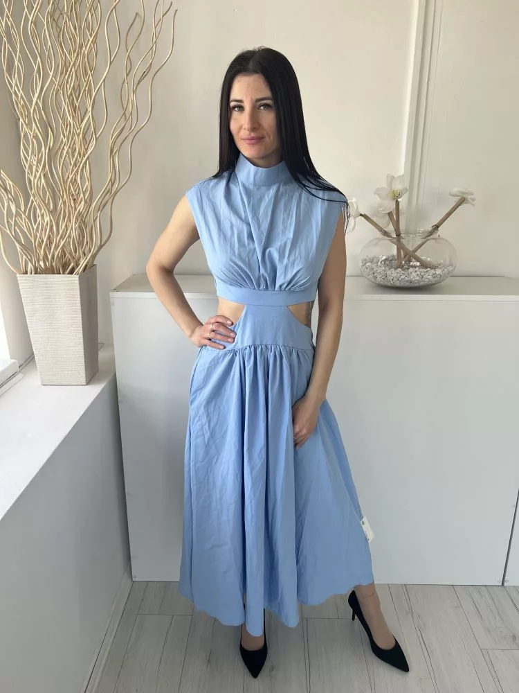 (M) Kék Hátul Cipzáros, Oldalt Kivágott Gumisderekú Ruha