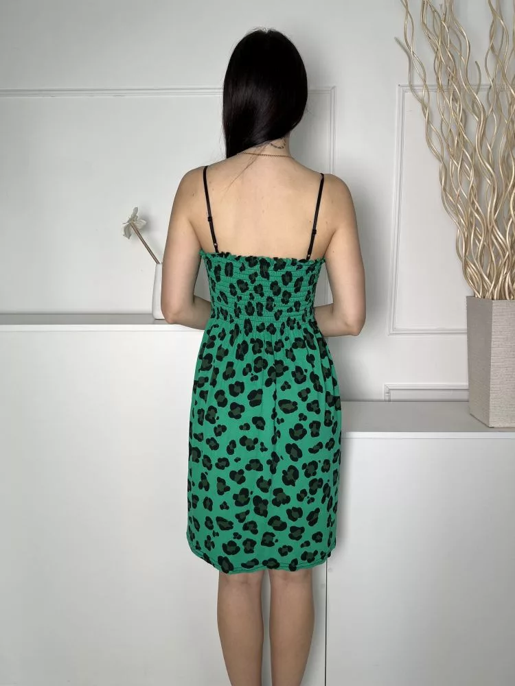 (M) Zöld Fekete Foltmintás, Felül Darázsolt Állítható Pántú Ruha