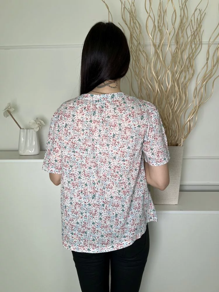 M&Co (S) Fehér Apró Színes Mintás, Elől Végig Gombos Kerek Nyakú, 100% Pamut Felső
