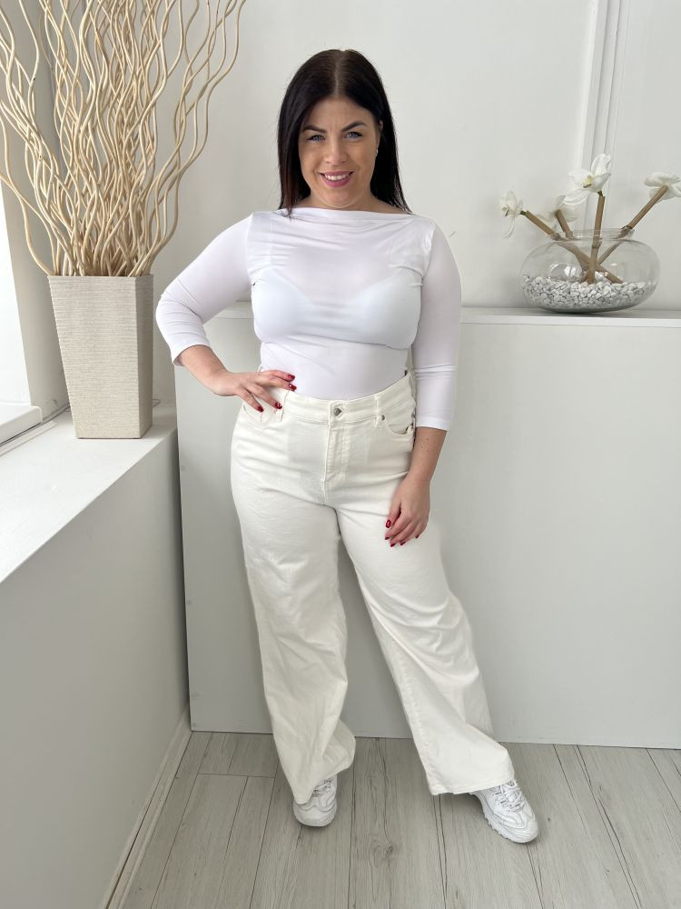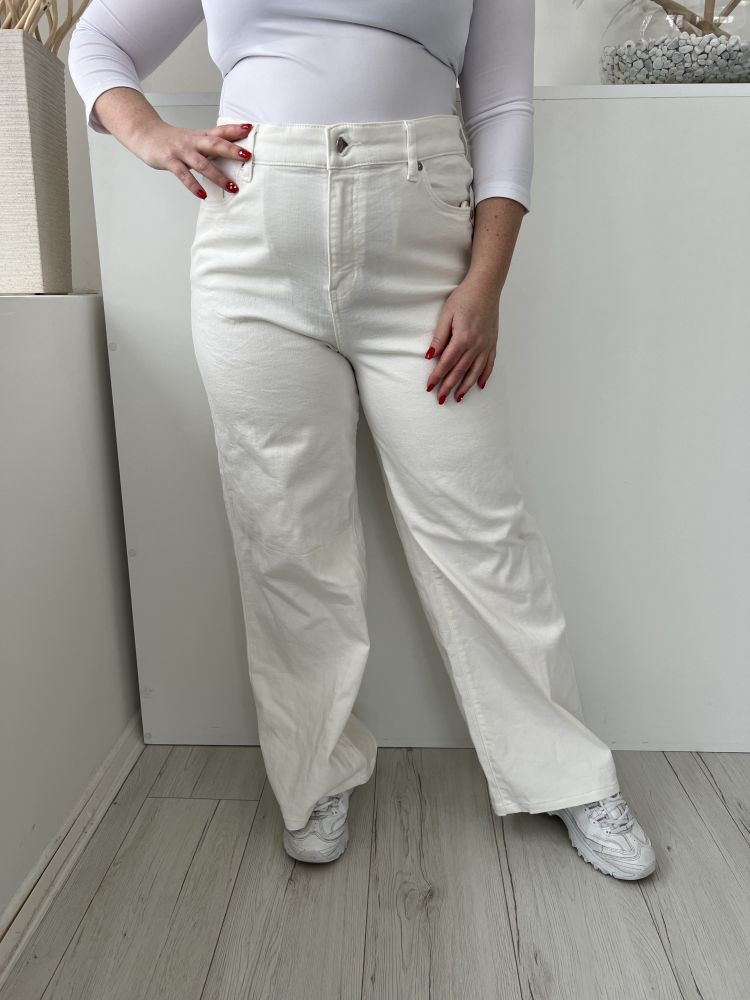 M&S (L) Fehér Elől Gombos, Zsebes Bőszárú, Farmer Nadrág