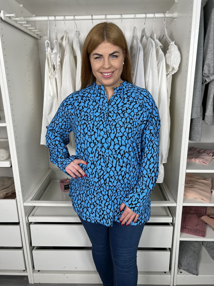 M&S (M) Kék Foltmintás, Mellnél Gombos Oversize Felső