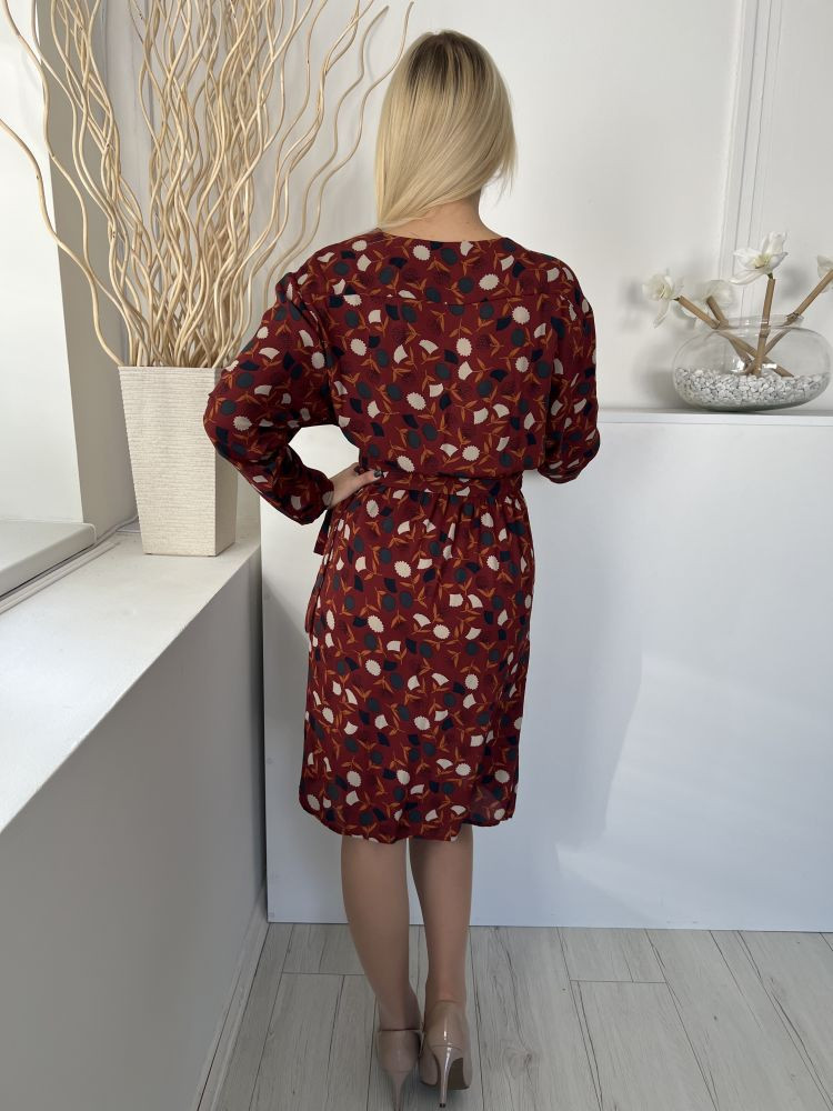 Mango (S) Bordó Drapp-Kék Mintás, Átlapolt Oldalt Megkötős Ruha