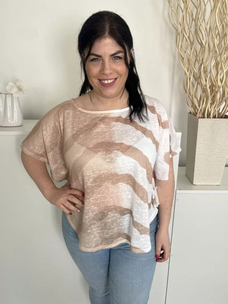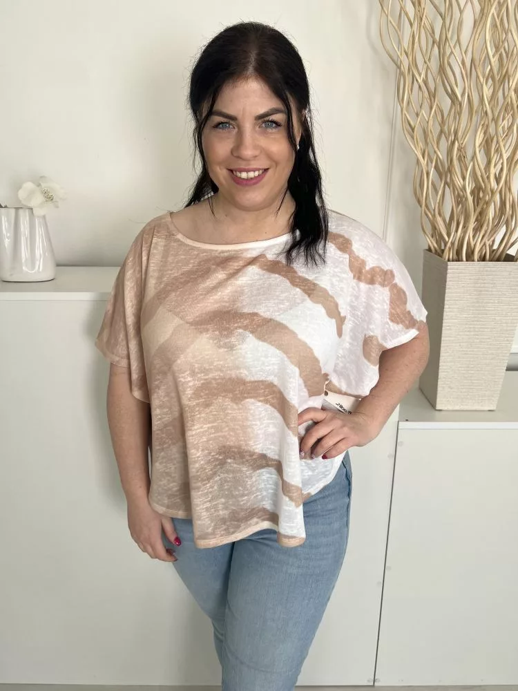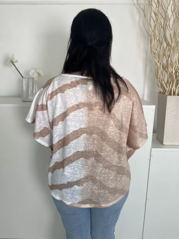 Marble (M) Fehér-Barna Mintás, Csónak Nyakú Áttetsző, Denevér Ujjú Felső