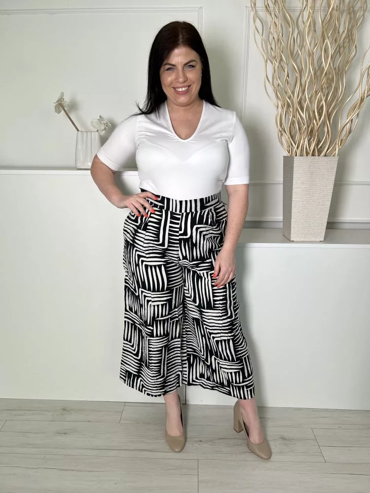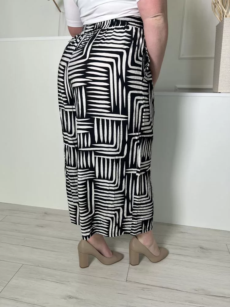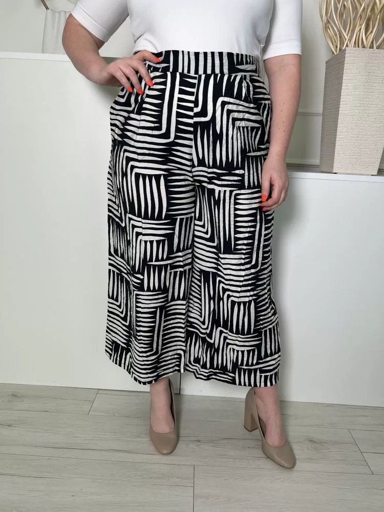 New Look (L) Fekete Fehér Mintás, Hátul Gumisderekú Zsebes, Bőszárú Nadrág