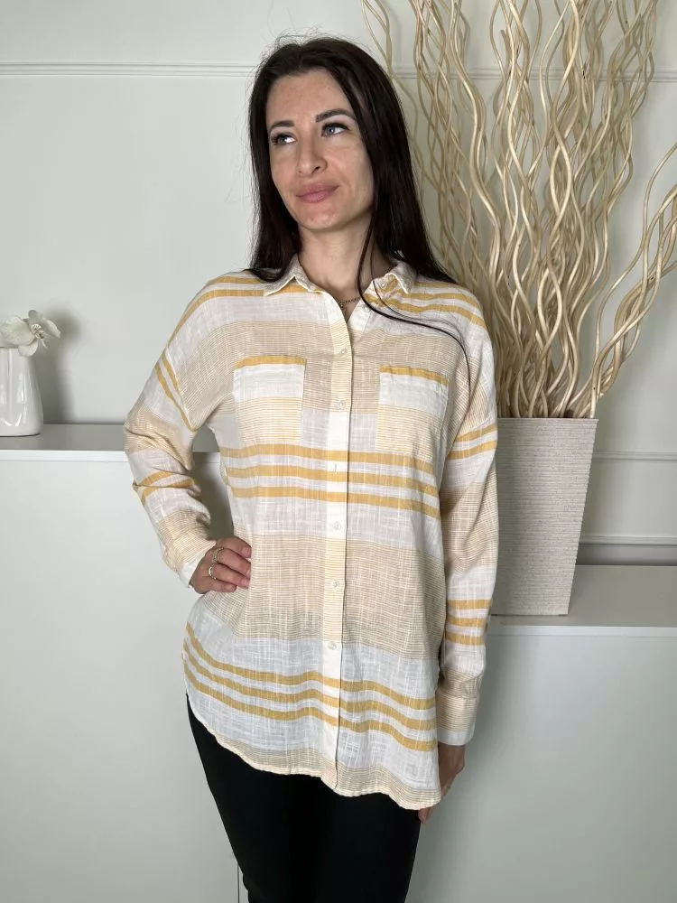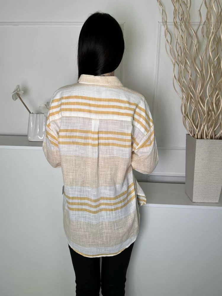 New Look (M) Fehér Sárga Csíkos, Elől Végig Gombos 100% Pamut, Mellnél Zsebes, Oldalt Sliccelt Felső