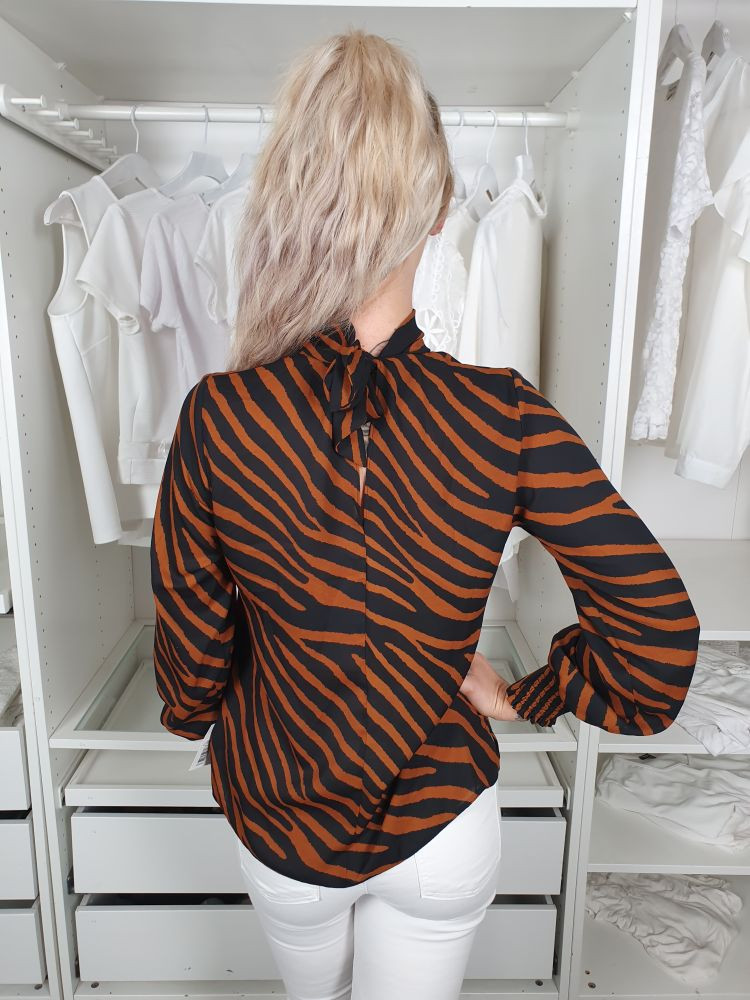 New Look (M) Fekete-Barna Csíkos, Bő Fazonú Hátul Nyakában Megkötős Felső