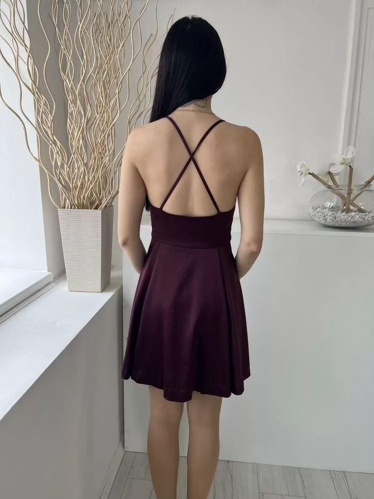New Look (M) Padlizsán Oldalt Cipzáros, Hátul Keresztpántos Derékban Szabott Ruha