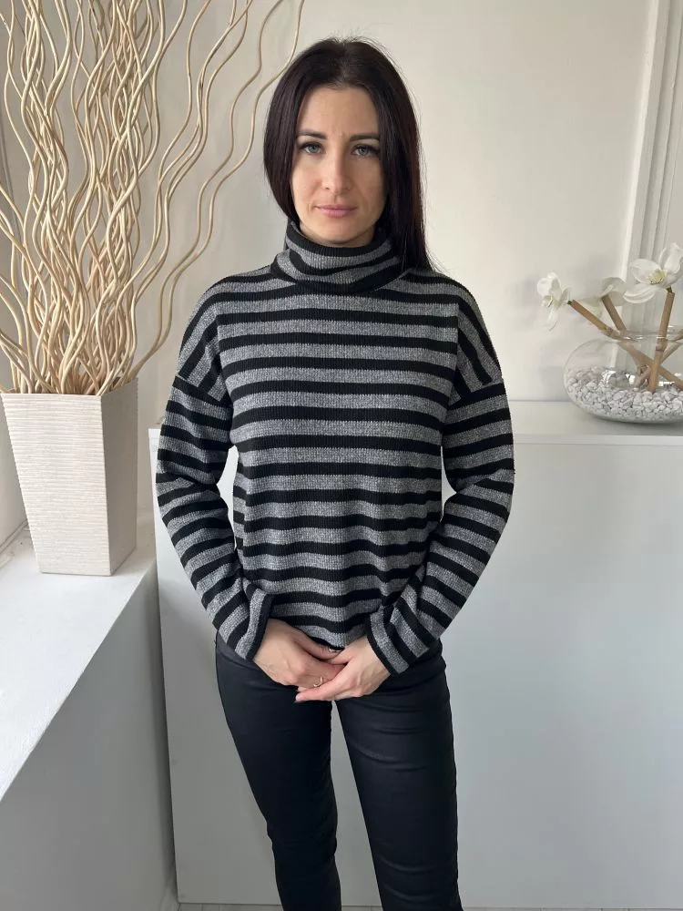 New Look (S) Szürke Fekete Csíkos, Garbós Nyakú Kötött Felső