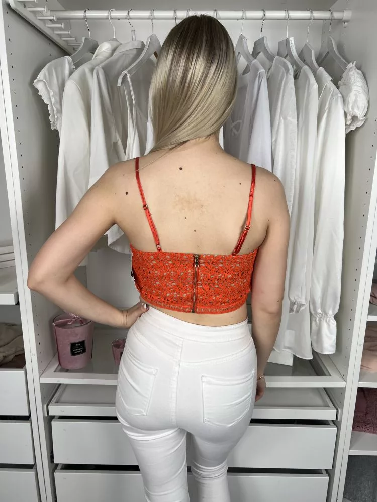 New Look (S) Vérnarancs Hátul Cipzáros, Horgoltmintás Pántos Felső