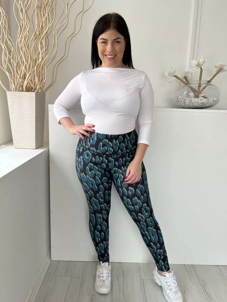 Next (L) Fekete Zöldeskék Foltmintás, Gumisderekú Rugalmas Anyagú Nadrág