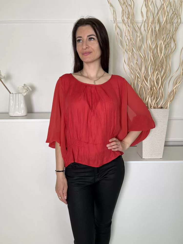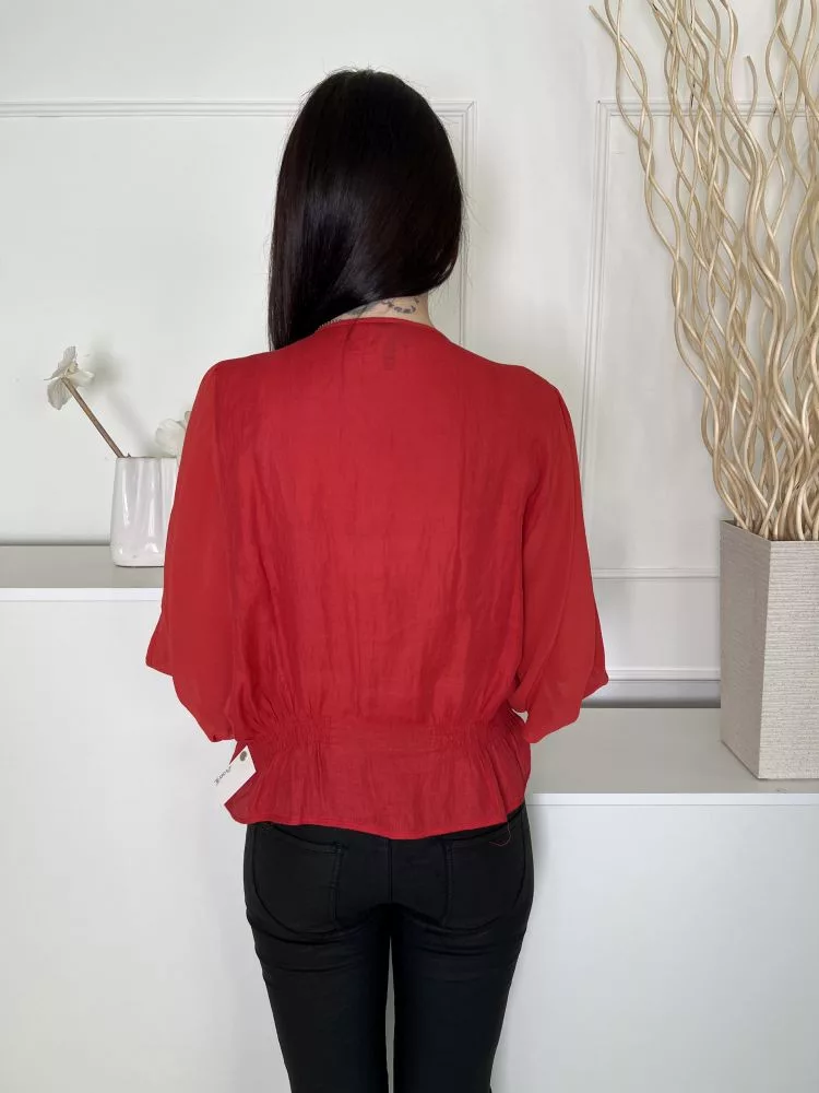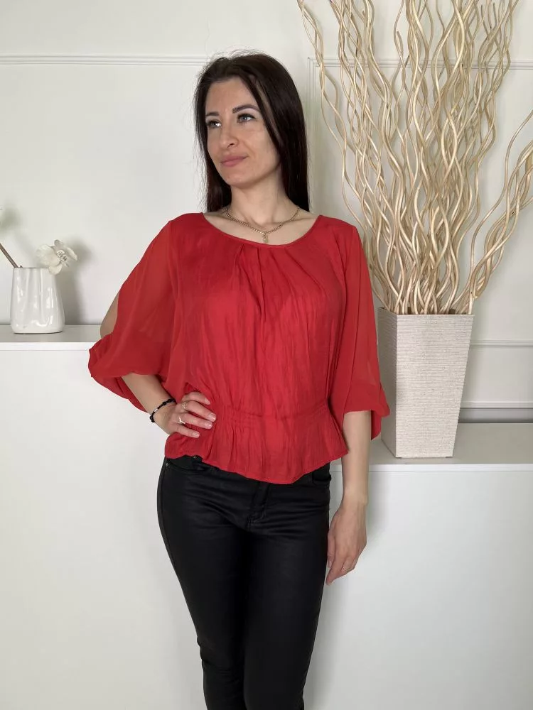 Next (M) Piros Derékban Darázsolt, Ujján Nyitott Kerek Nyakú Felső