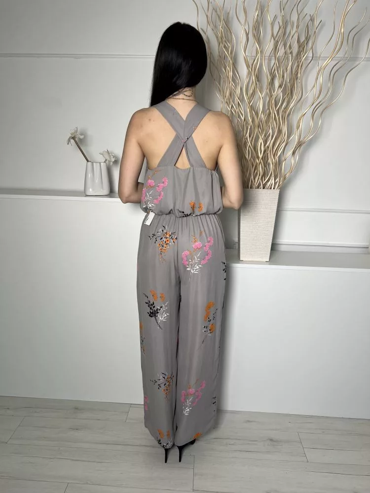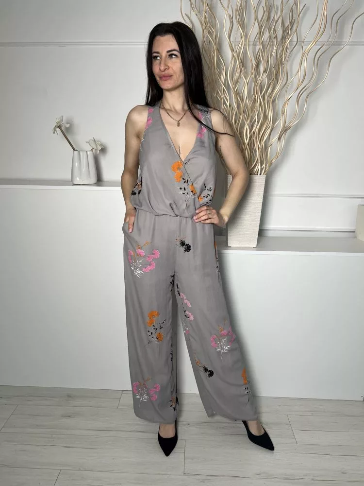 Next (M) Szürke Színes Virágos, Mellnél Átlapolt Patentos, Zsebes Overál