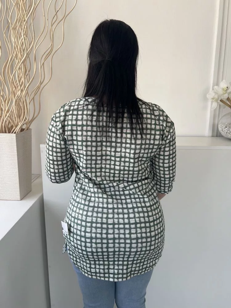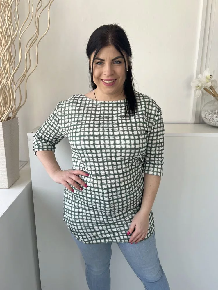 Next (M) Zöld Fehér Mintás, Csónak Nyakú Hosszított Fazonú Felső