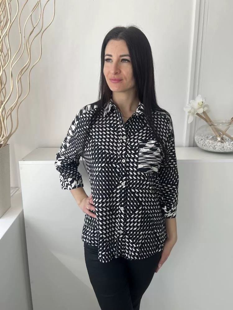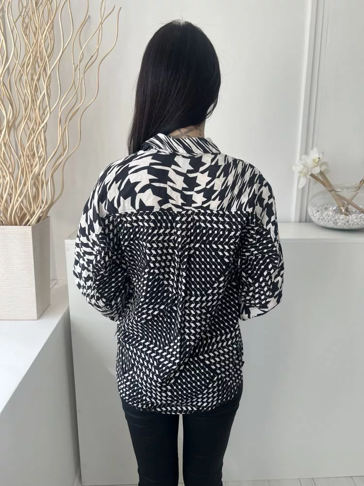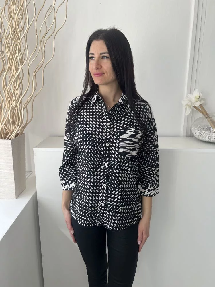 Next (S) Fekete Fehér Mintás, Elől Végig Gombos Mellnél Zsebes, Oldalt Sliccelt Felső