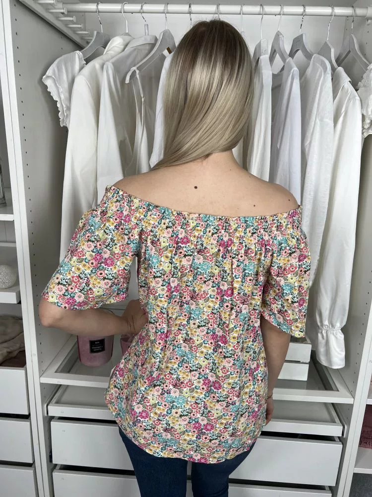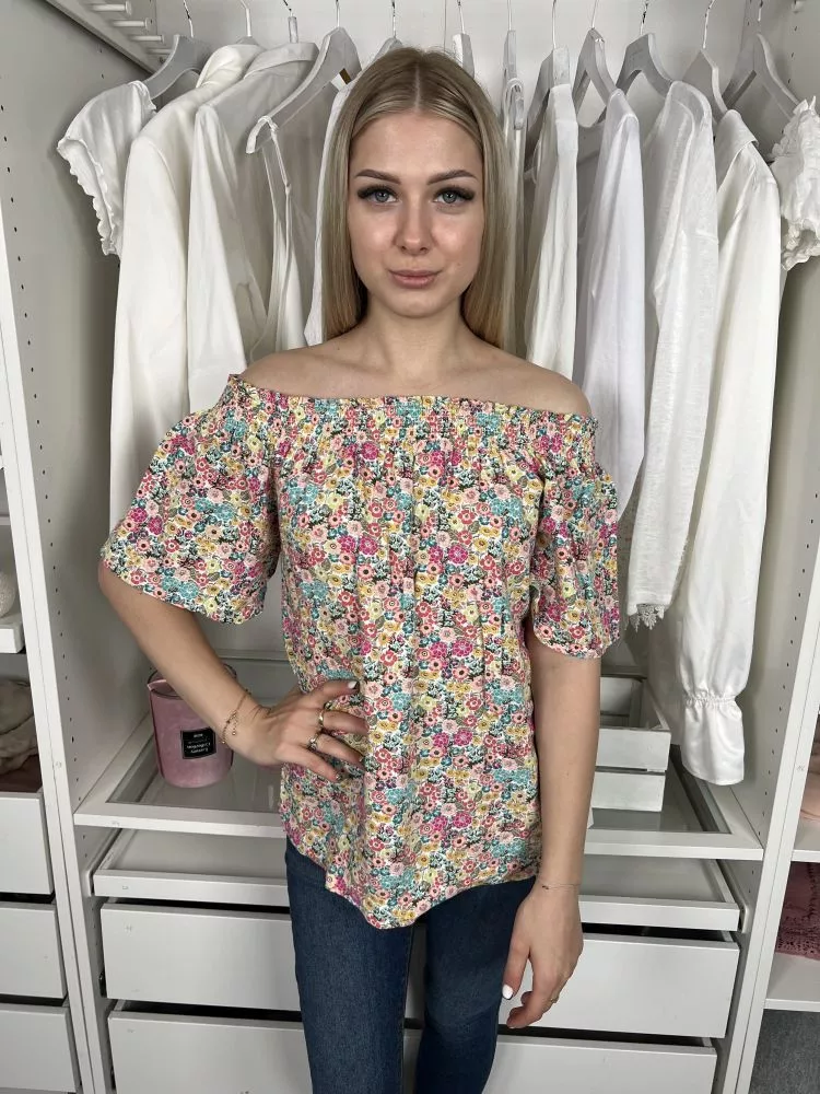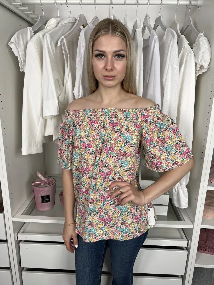 Next (S) Színes Apró Virágos Ejtett Darázsolt Vállú Bőujjú, 30% Len Alapanyagú Felső