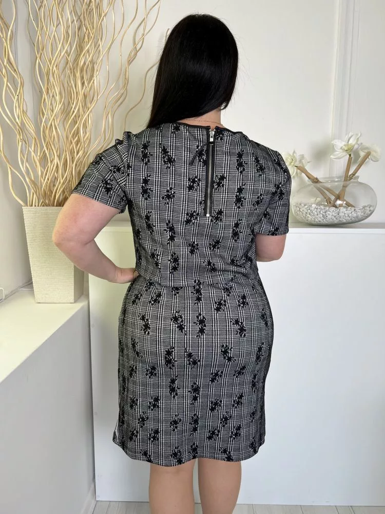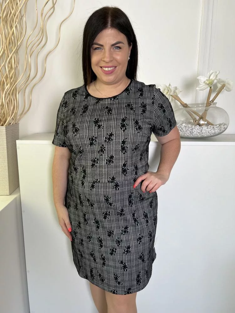 Oasis (L) Szürke Kereknyakú Virágmintás, Hátul Nyakban Cipzáros Ruha