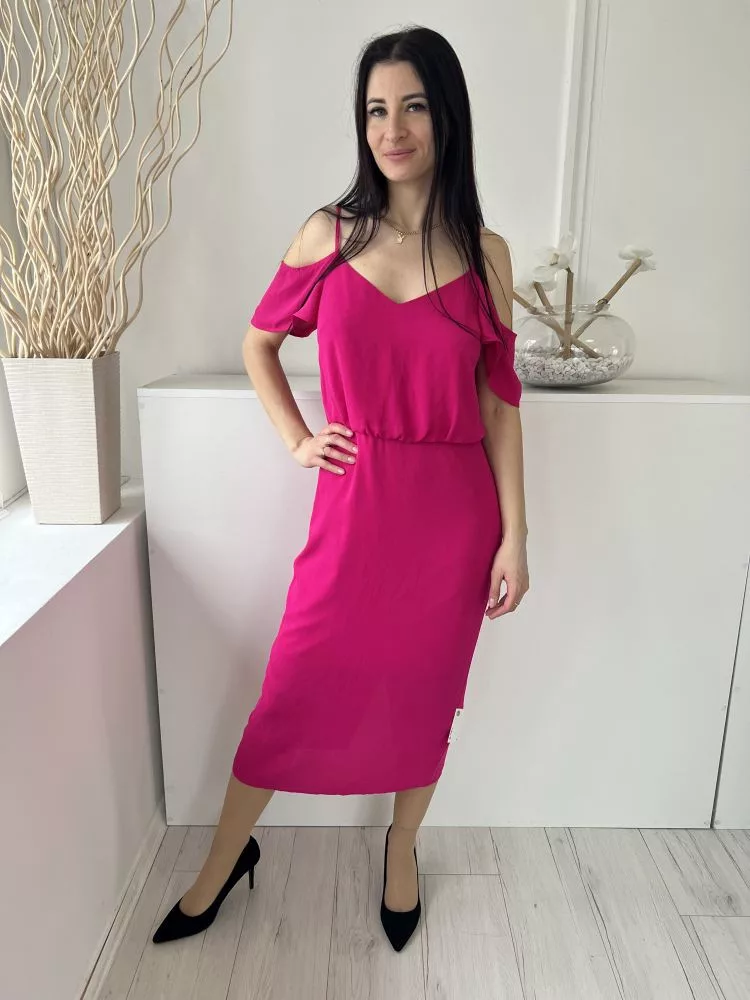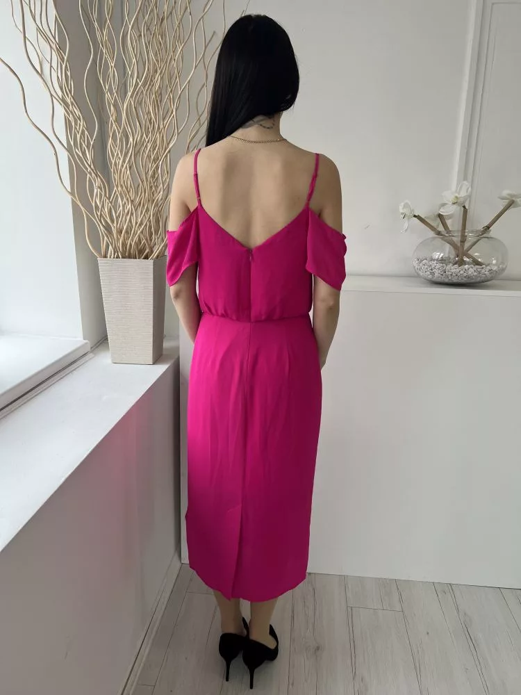 Oasis (M) Pink Hátul Cipzáros, Nyitott Vállú, Pántos Derékban Szobott, Ráncolt Ruha
