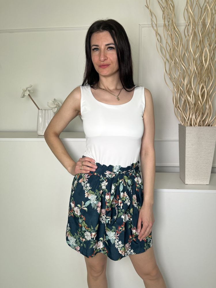Oasis (M) Zöldeskék Színes Virágos, Gumisderekú Derékban Megköthető Szoknya