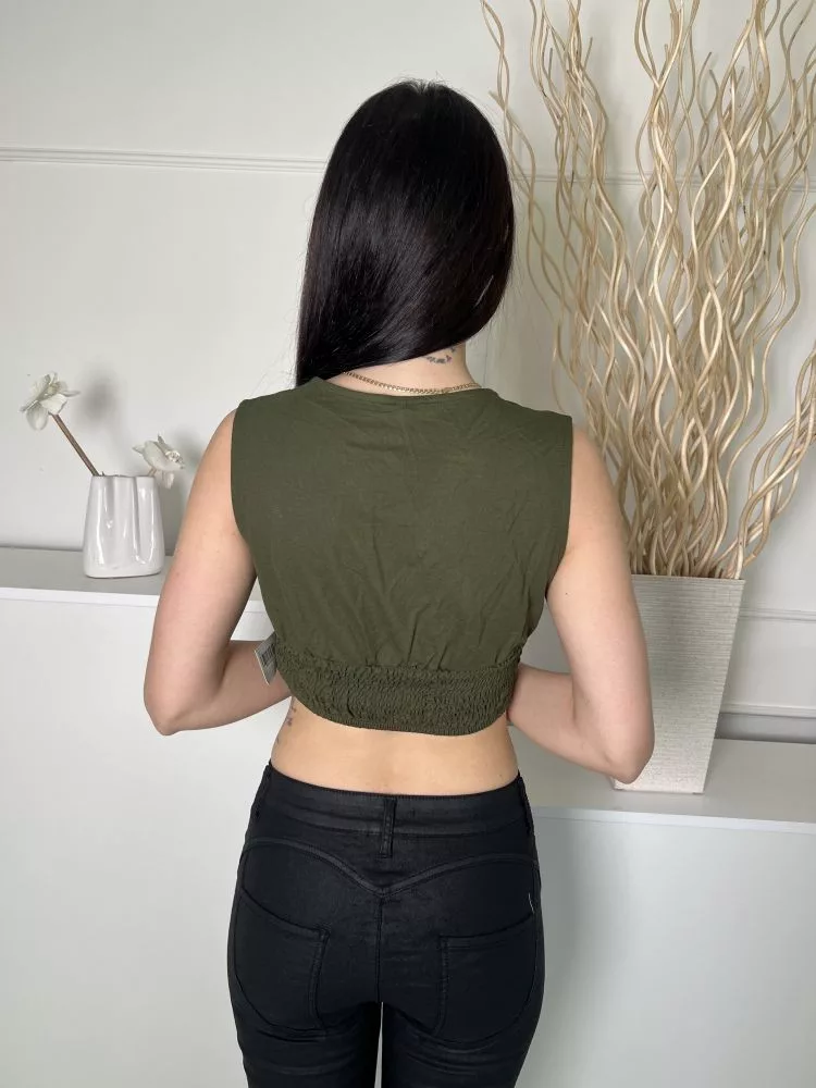 Only (S) Khaki Hátul Derékban Darázsolt Mellnél Húzott, Rövid Fazonú Felső