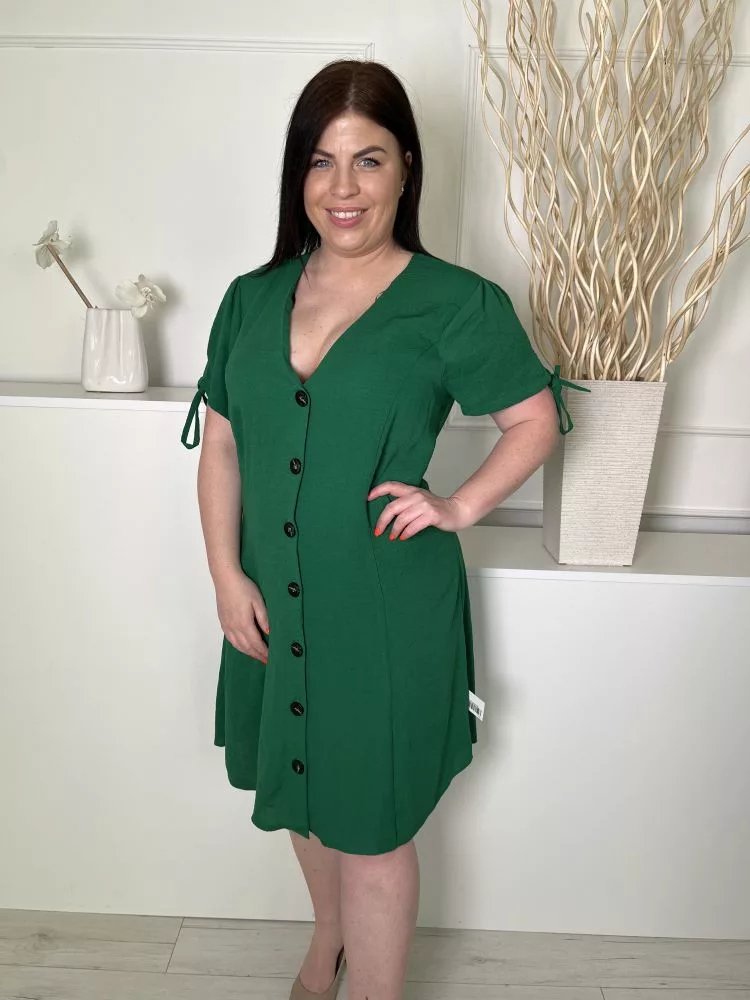 Papaya (L) Fűzöld Elől Végig Gombos, Ujján Megkötős V Kivágású Ruha