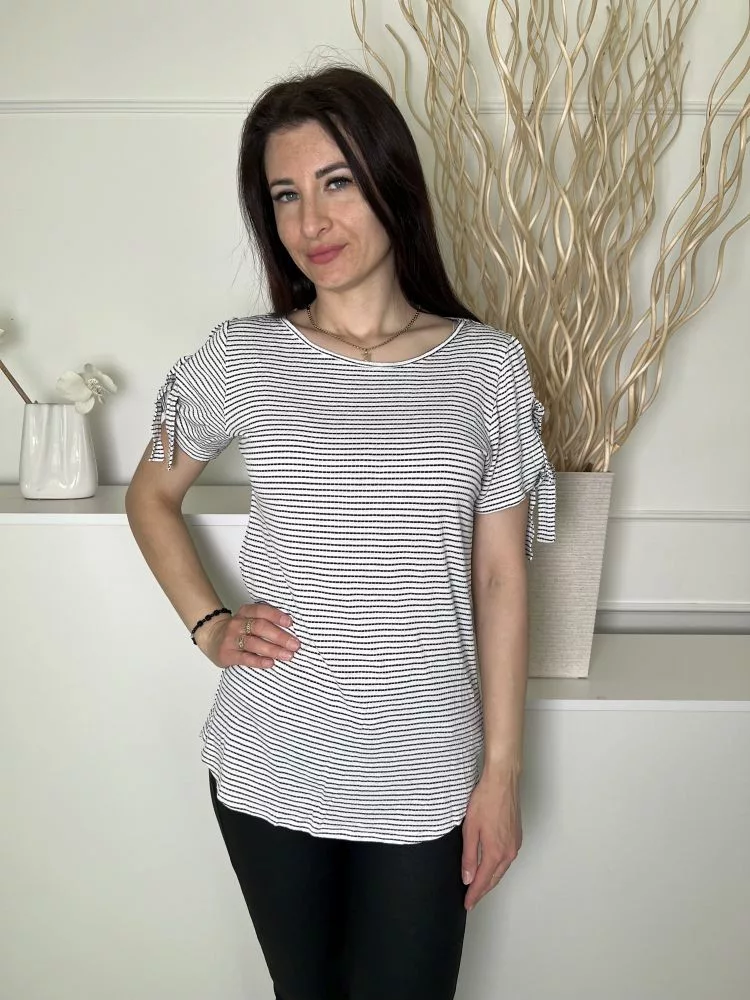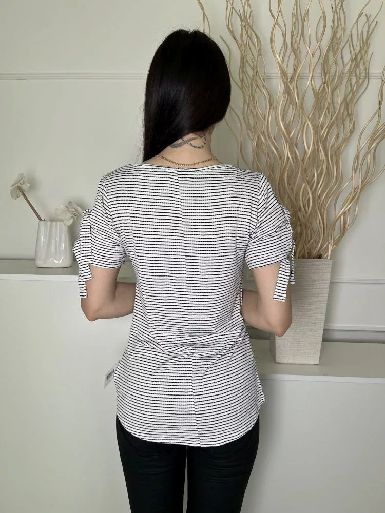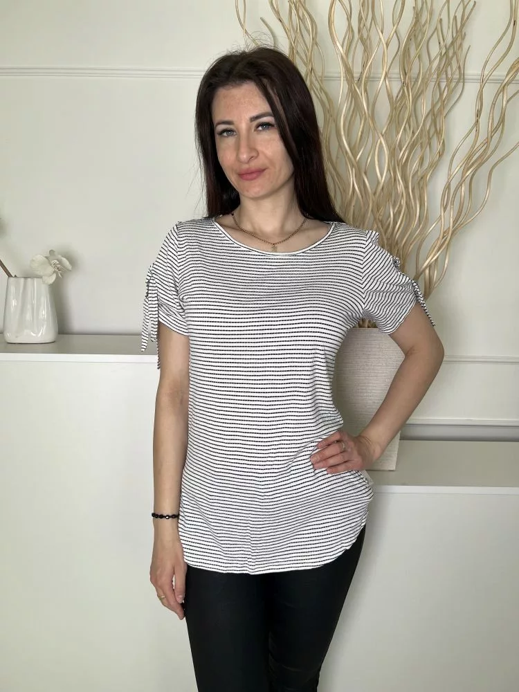 Papaya (M) Fehér Fekete Csíkos, Csónak Nyakú Ujján Megkötős, Rugalmas Anyagú Felső