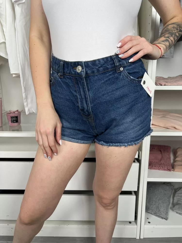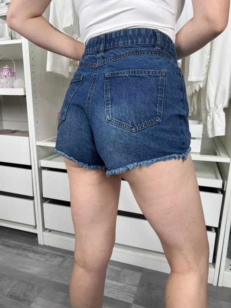 Papaya (M) Kék Elől Gombos, Zsebes Rojtos Aljú,Farmer Rövidnadrág