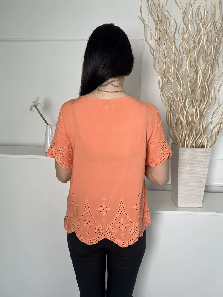 Papaya (M) Narancs Anyagában Lyukacsos, Csónak Nyakú Mellbevarrásos, Hullámos Szegélyű Felső