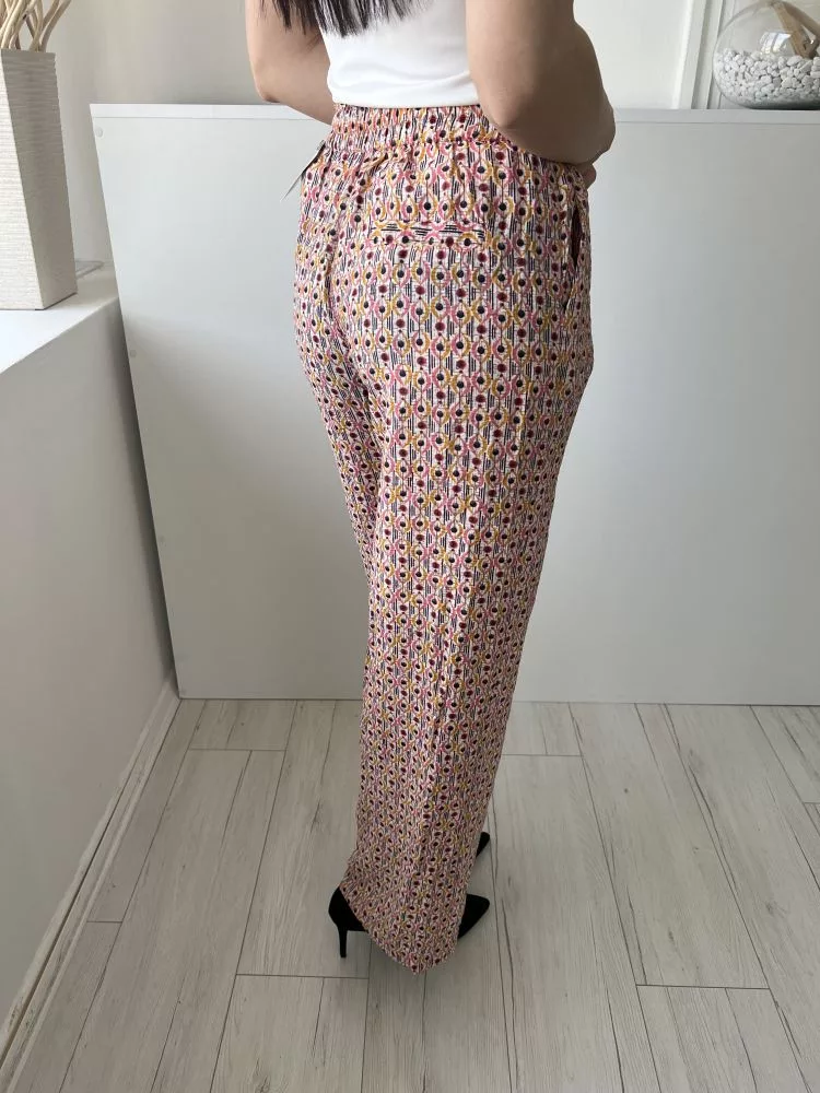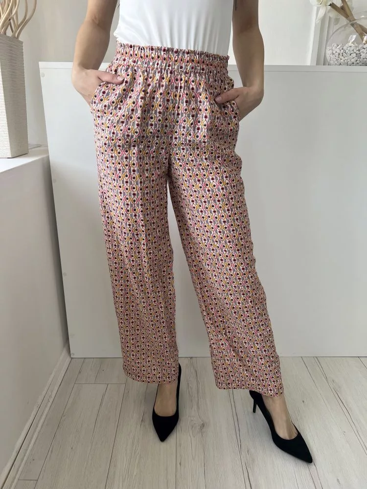 Papaya (S) Fehér Apró Színes Mintás, Zsebes Darázsolt Derekú Nadrág